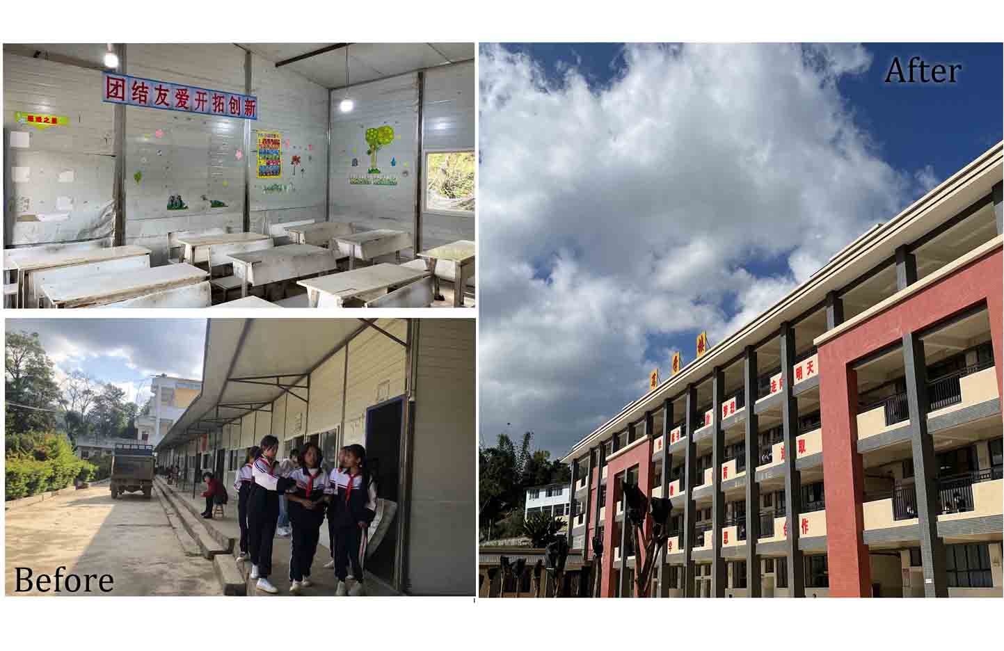 Until last July, Wang's daughter, together with some 400 other pupils, were still studying in improvised classrooms that had been pieced together with composite boards. As the structure was not entirely sealed, it was particularly susceptible to wind and water.