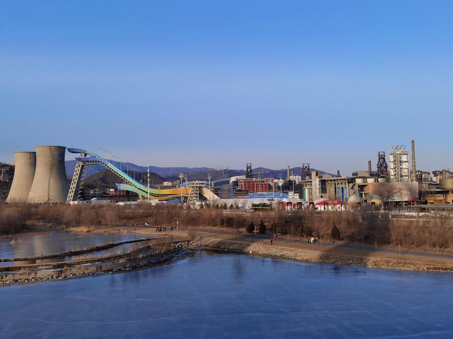 Photo taken with a mobile phone shows a view of Big Air Shougang, a venue for Beijing 2022 Winter Olympic Games, in Beijing, capital of China, Jan. 16, 2022. (Xinhua/Chen Yehua)