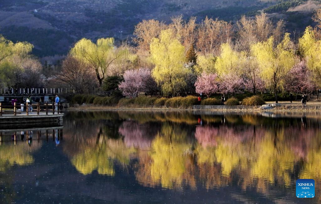 People visit Beijing Botanical Garden in Beijing, capital of China, April 3, 2022. (Xinhua/Li Xin)