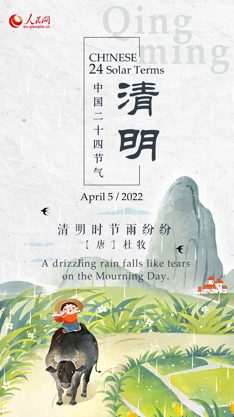 The Qingming solar term comes after the Spring Equinox as the fifth of China's 24 solar terms. It takes place on April 5 this year. As the ancient book Suishibaiwan records, the name originates from the saying "plants start to revive and prosper at Qingming in a clean and bright way." Thus, the day is called Qingming, which means clean and bright.
