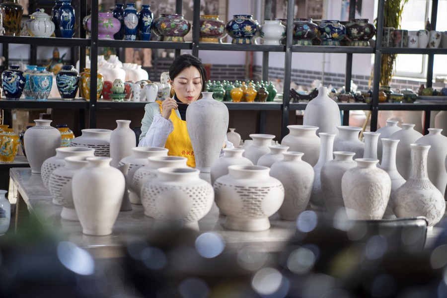 The young woman, who had been studying at a university in the United States, decided to return to her hometown. Qiao has dedicated herself to exploring new Fahua pottery designs including innovations in color glazing, and her artworks are particularly popular among young people.
