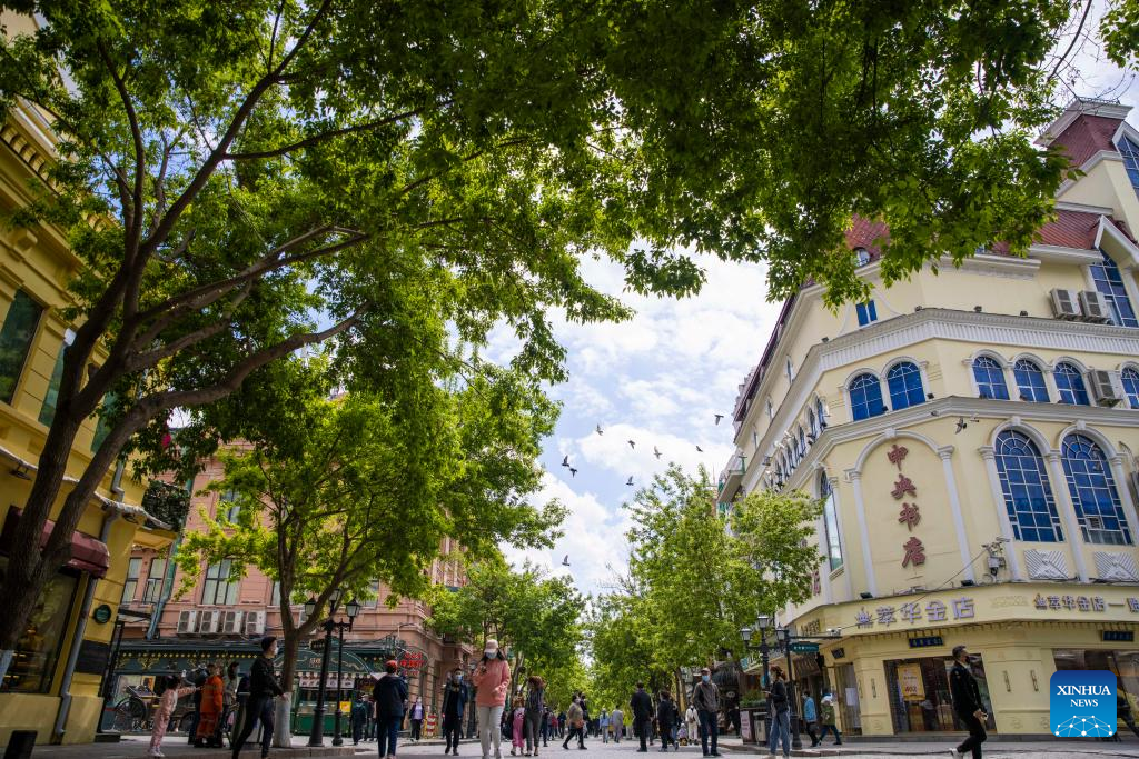 Citizens walk on the Central Street in Harbin, northeast China's Heilongjiang Province, May 11, 2022. Harbin started to resume normal life and production in an orderly manner from Wednesday. (Xinhua/Zhang Tao)