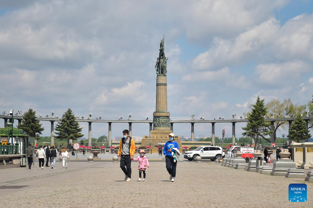 Citizens are seen at a park in Harbin, northeast China's Heilongjiang Province, May 11, 2022. Harbin started to resume normal life and production in an orderly manner from Wednesday. (Xinhua/Zhang Tao)