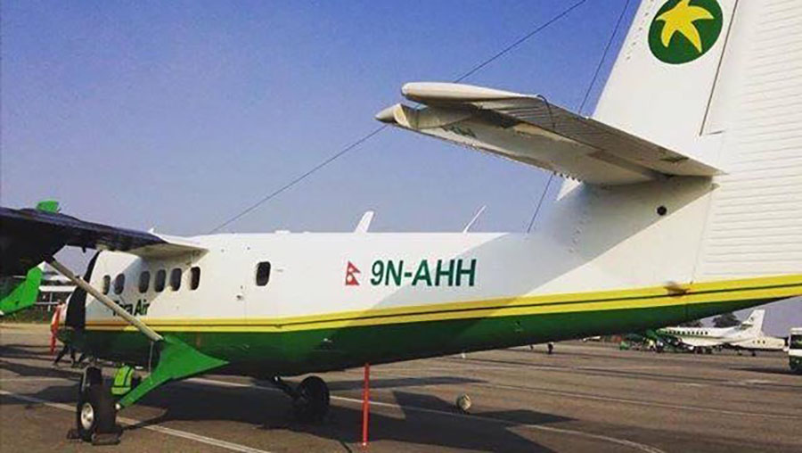 Undated file photo shows a Twin Otter plane landing at an airport in Kathmandu, capital of Nepal. (Xinhua/Sunil Sharma)