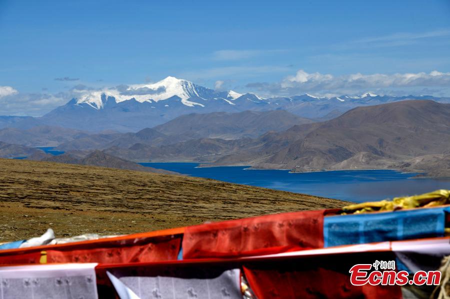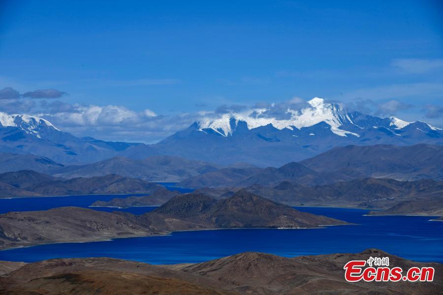Stunning scenery of Yamzho Yumco lake, also known as Yamdrok Tso lake, one of the three holy lakes in Shannan, southwest China's Tibet Autonomous Region. With a length of 130 kilometers and a width of 70 kilometers, the lake is the largest inland lake on the northern slope of the Himalaya Mountains. (Photo: China News Service/Li Lin)