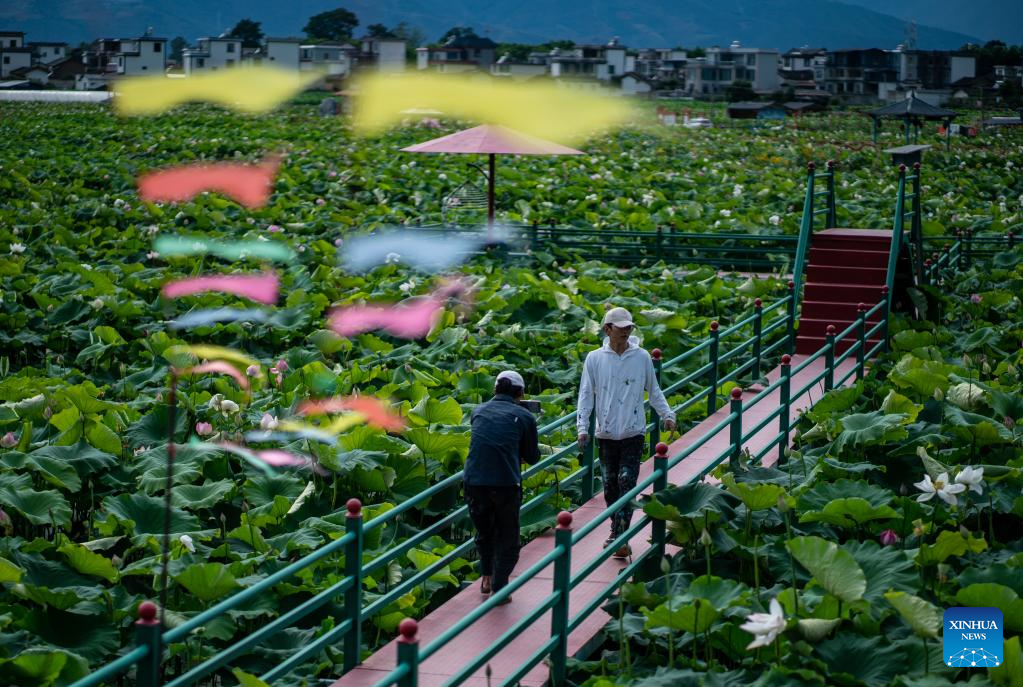 Villagers view Liu Zhicheng's wall painting in Cuihu Village, Sanchuan Township, Yongsheng County, Lijiang City, southwest China's Yunnan Province, June 24, 2022.
