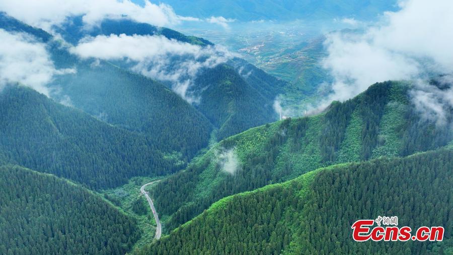 A sea of clouds hover over Xinglong Mountain after summer rain, forming a magnificent landscape in Lanzhou, northwest China's Gansu Province, June 28, 2022. (Photo: China News Service/Zhao Xiangjun)