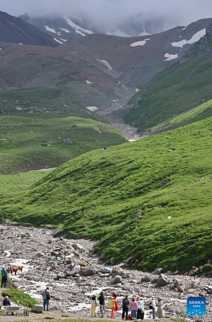 Tourists visit the Narat scenic spot in Xinyuan County, northwest China's Xinjiang Uygur Autonomous Region, June 28, 2022. (Xinhua/Hao Jianwei)