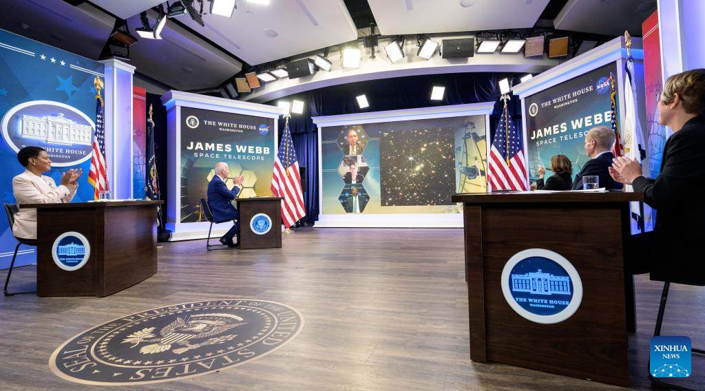 LOS ANGELES, July 12 (Xinhua) -- NASA released James Webb Space Telescope's first full-color images of the universe and their spectroscopic data on Tuesday, revealing the unprecedented and detailed views of the universe.