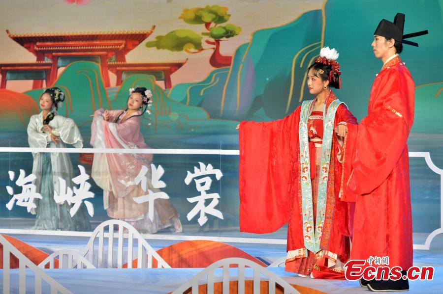 Models show off traditional Chinese attire at the 2022 Cross-Straits Traditional Chinese Clothing Cultural Festival in Xiamen, Fujian Province, July 12, 2022. (Photo: China News Service/Zhang Bin)