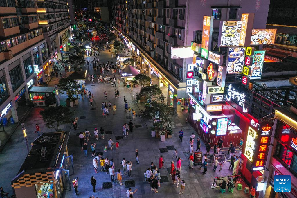 Qingyun Road was a famous bustling food street at nighttime in the city of Guiyang. Thanks to local planning and years of renovation, the road has turned to be a popular commercial pedestrian street which contains various trendy businesses like cultural innovation and art design while retaining its food street fame. (Xinhua/Yang Wenbin)