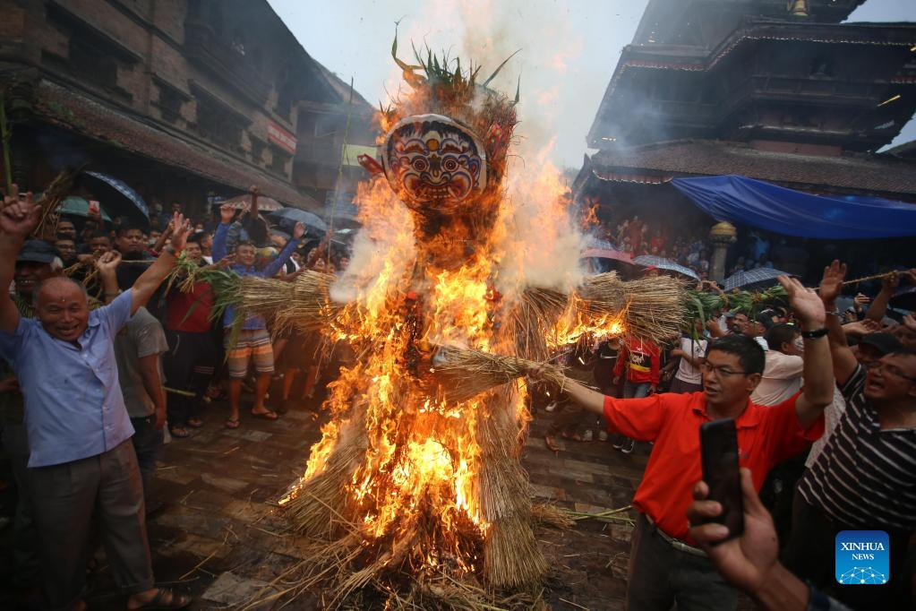 People observe the Ghantakarna Festival in Bhaktapur, Nepal, July 26, 2022. Members of the Newar community in the Kathmandu Valley observe the festival to chase away evil spirits and usher in good fortune. (Photo by Sulav Shrestha/Xinhua)
