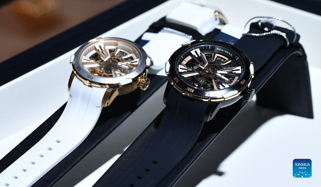 Photo taken on July 26, 2022 shows Sea-Gull watches exhibited at the second China International Consumer Products Expo (CICPE) in Haikou, south China's Hainan Province. A batch of domestic brands have attracted a lot of visitors at the expo. (Xinhua/Yang Guanyu)