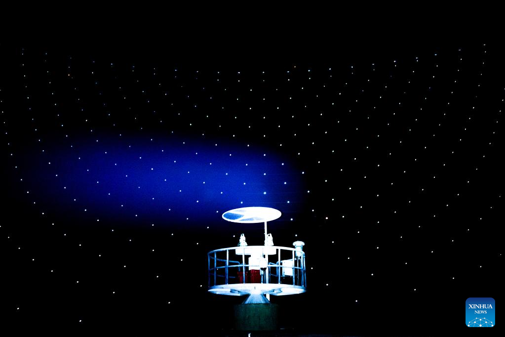 Photo taken on Jan. 8, 2020 shows a night view of China's Five-hundred-meter Aperture Spherical Radio Telescope (FAST) in southwest China's Guizhou Province.