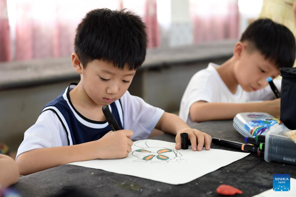 Students learn painting in Hefei, east China's Anhui Province, Aug. 11, 2022.