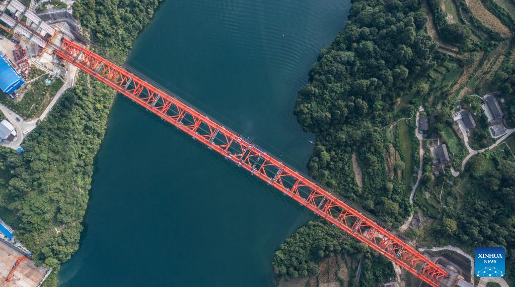 Wujiang grand bridge in SW China's Guizhou completes closure