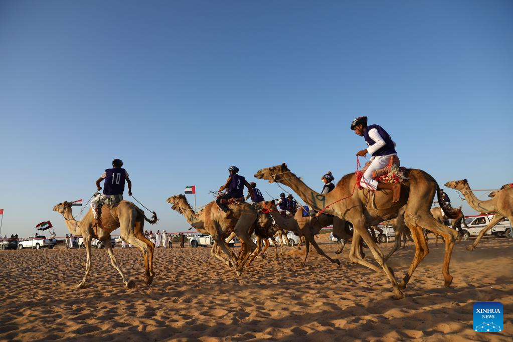 Participants compete during a camel race in El Alamein City, Egypt, Aug. 23, 2022. (Xinhua/Ahmed Gomaa)