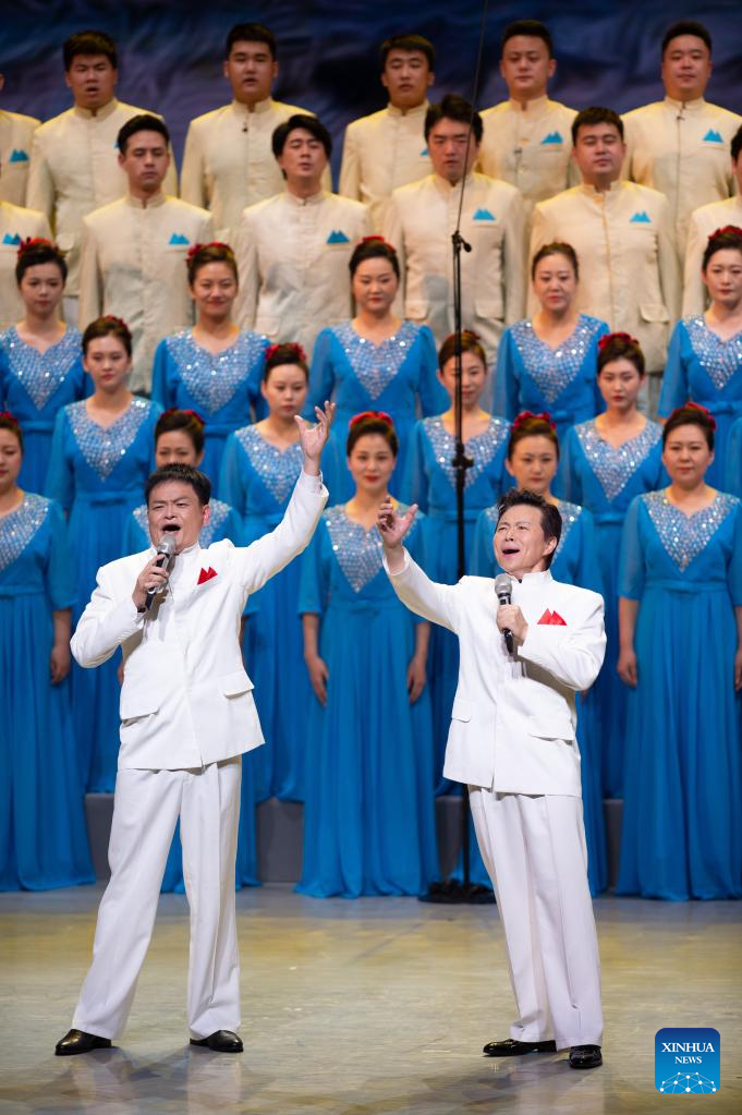 Artists perform a chorus during the opening ceremony of the 13th China Art Festival held at the National Center for the Performing Arts in Beijing, capital of China, Sept. 1, 2022. (Xinhua/Chen Zhonghao)