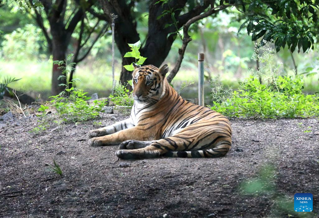 Photo taken on Sept. 4, 2022 shows a tigress resting at Kamla Nehru Zoological Park in Indore, 200 Km from Bhopal, capital of India's Madhya Pradesh state. (Str/Xinhua)