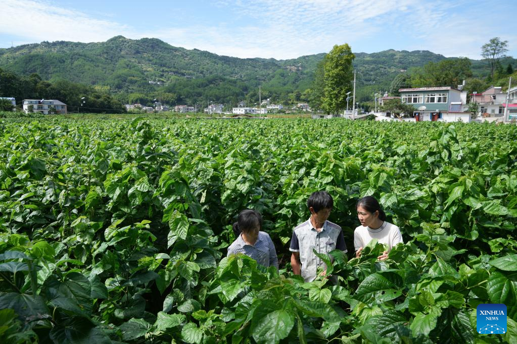 Since 2022, Anhui Academy of Agricultural Sciences has established a research team to provide technical support to local farmers and enterprises. The team has served 10 demonstration villages, covering more than 2,000 farmers to help promote the development of local sericulture industry. (Xinhua/Du Yu)