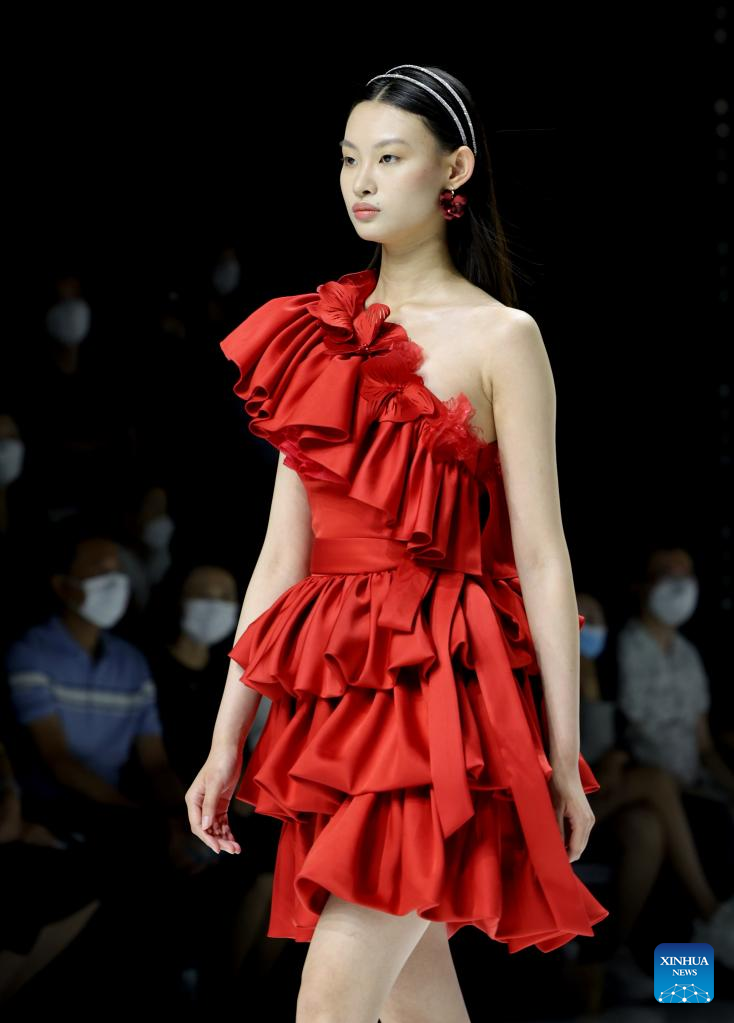 A model presents a creation at the closing show of China Fashion Week S/S 2023 in Beijing, capital of China, Sept. 12, 2022. The event concluded here on Monday. (Xinhua/Chen Jianli)