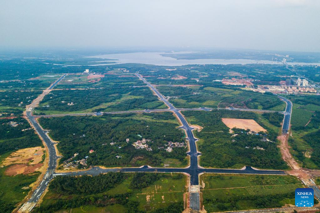 Aerial photo taken on Sept. 14, 2022 shows the road network of the Wenchang International Aerospace City in Wenchang, south China's Hainan Province. Focusing on the development of aerospace science and technology, the Wenchang International Aerospace City, one of the key industrial parks of Hainan free trade port, is undergoing construction in an orderly manner. (Xinhua/Pu Xiaoxu)
