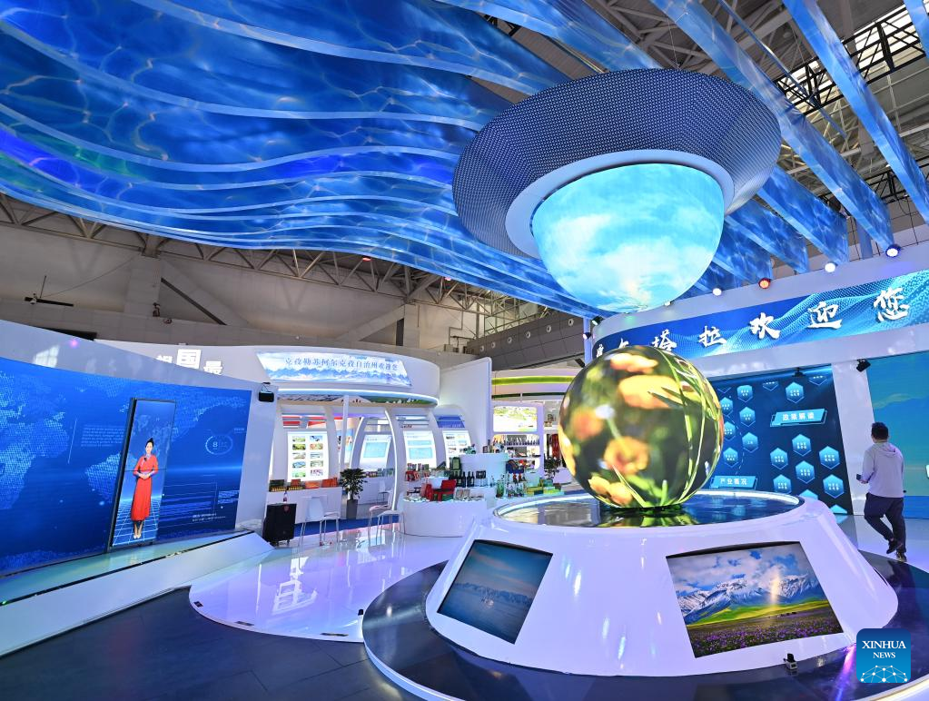 Covering an exhibition area of 40,000 square meters, the expo has set up three zones featuring themes including investment cooperation and commodity trade. (Xinhua/Li Xiang)