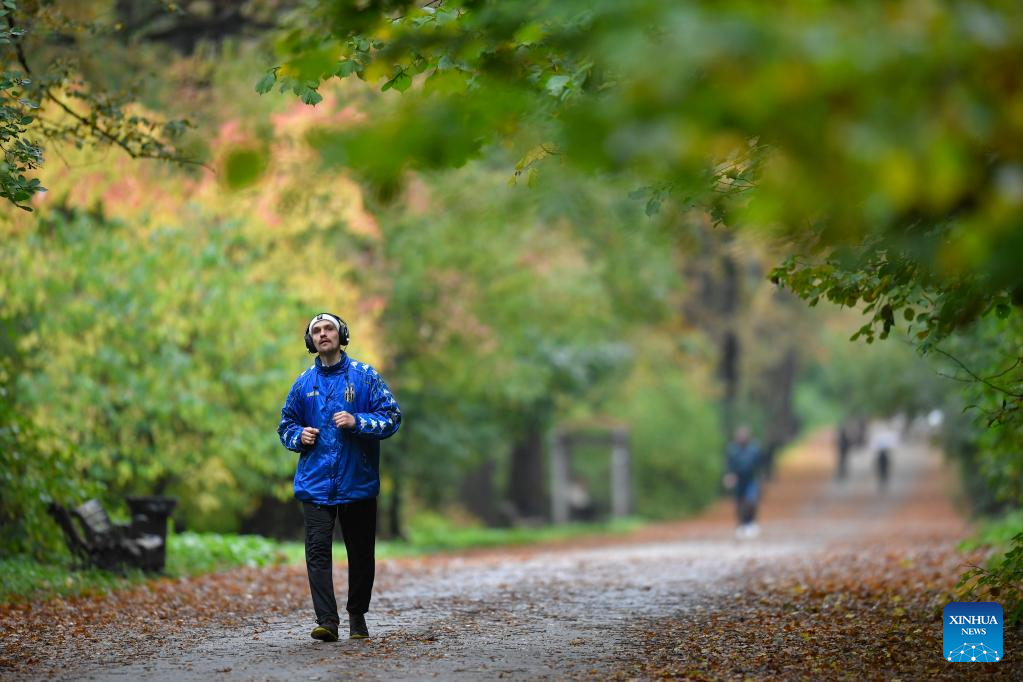 A man runs at a park in Moscow, Russia, on Sept. 25, 2022. (Photo by Alexander Zemlianichenko Jr/Xinhua)