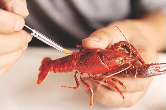 Dong Tao colors a crayfish specimen. (Photo/sd.dzwww.com)