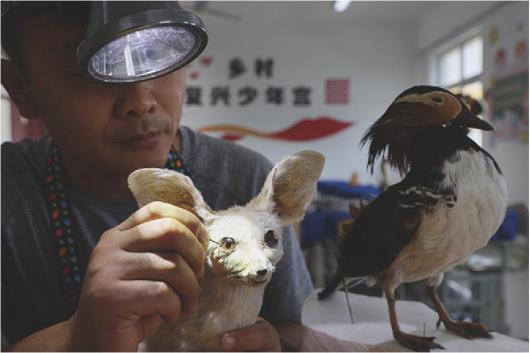 Dong Tao works on a specimen of a fennec fox. He has already spent two months producing the specimen. (Photo/sd.dzwww.com)