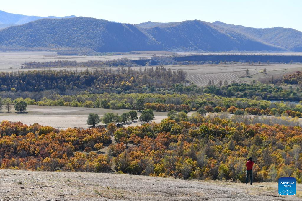 Visitors enjoy autumn scenery in Chaihe Town, Zhalantun City of north China's Inner Mongolia Autonomous Region, Sept. 28, 2022. (Xinhua/Wang Zecong)