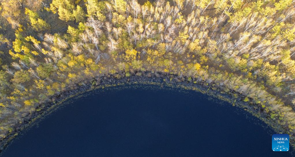 Aerial photo taken on Sept. 28, 2022 shows autumn scenery in Chaihe Town, Zhalantun City of north China's Inner Mongolia Autonomous Region. (Xinhua/En Hao)