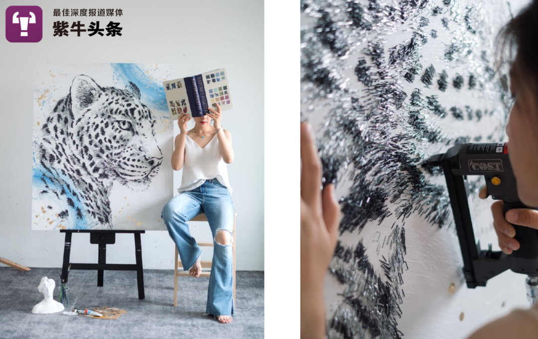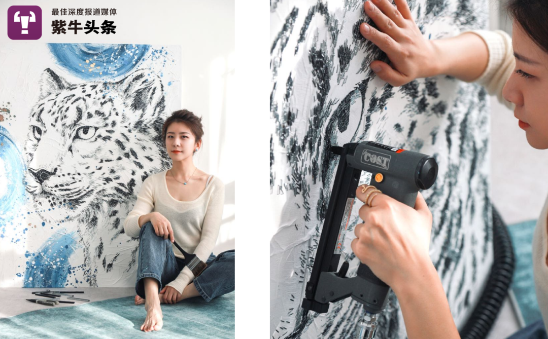 As 2022 is the Year of the Tiger according to the Chinese Zodiac, Qingchuan planned to use a nail gun to create a drawing of a tiger. When she collected information about Siberian tigers, she found that China is home to 13 wild species of the cat family.
