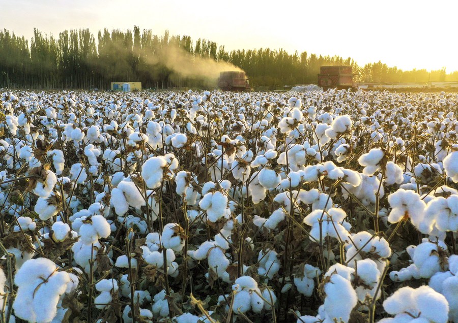 URUMQI, Oct. 21 (Xinhua) -- Xinjiang has entered its large-scale cotton harvest period this year, with machines expected to do over 80 percent of the picking work, local authorities said. Domestically-made machinery cotton pickers have played an important role in enhancing the efficiency of cotton picking.