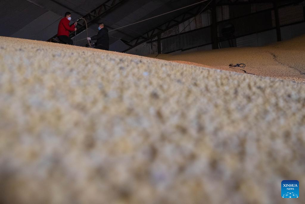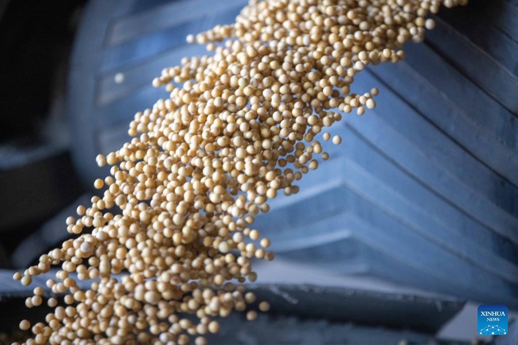 This photo shows sorted soybeans at a grain trading company in Suihua, northeast China's Heilongjiang Province, Oct. 25, 2022. Autumn grain purchasing work is underway in Heilongjiang. (Xinhua/Zhang Tao)