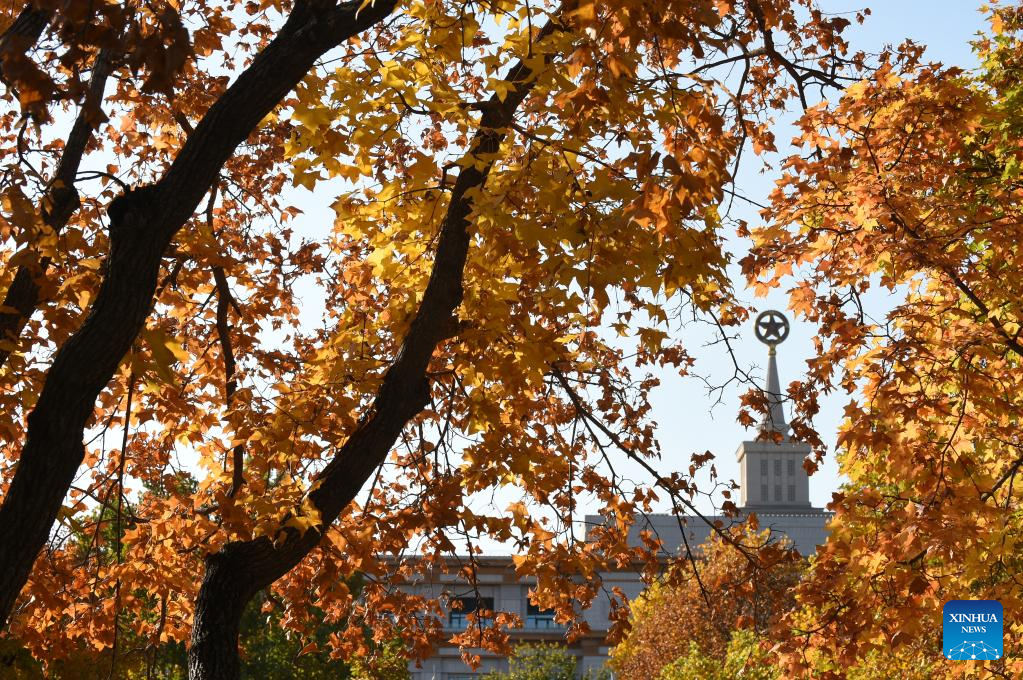 This photo taken on Nov. 1, 2022 shows the autumn scenery near the Military Museum of the Chinese People's Revolution in Beijing, capital of China. (Xinhua/Luo Xiaoguang)