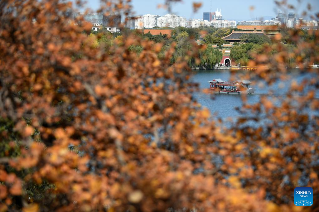 This photo taken on Nov. 1, 2022 shows the autumn scenery of Yuyuantan Park in Beijing, capital of China. (Xinhua/Luo Xiaoguang)