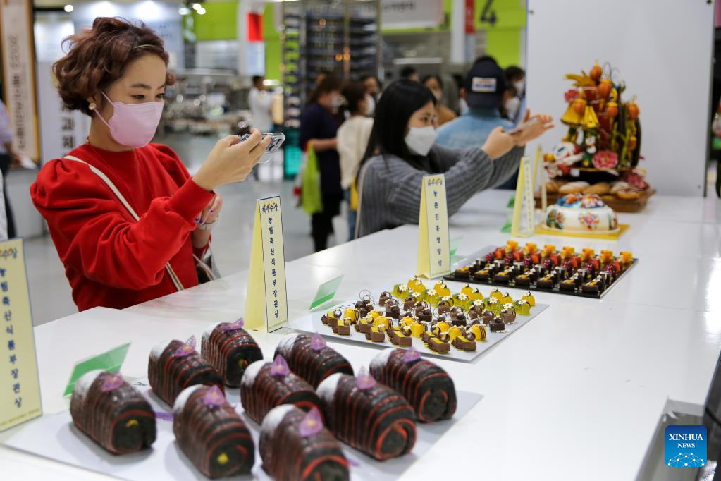 Desserts are displayed during the Coex Food Week 2022 in Seoul, South Korea, Nov. 2, 2022. The event kicked off in Seoul on Wednesday. (Xinhua/Wang Yiliang)