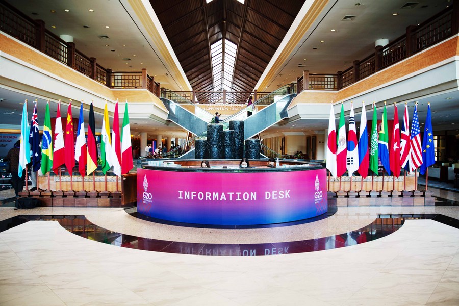 This photo taken on Nov. 13, 2022 shows an interior view of the media center for the upcoming 17th Group of 20 (G20) Summit in Bali, Indonesia. (Xinhua/Wang Yiliang)