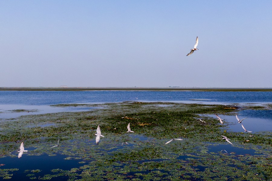 Migratory birds are seen in Chenhu Lake Wetland Nature Reserve in Wuhan, capital of Central China's Hubei province, Aug 4, 2022. [Photo/Xinhua]