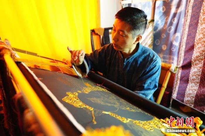 Liu Yunfan, an inheritor of Wushan embroidery, an intangible cultural heritage item in Tianshui city, northwest China's Gansu Province, has made it his mission to revive embroidery works that feature Dunhuang elements.