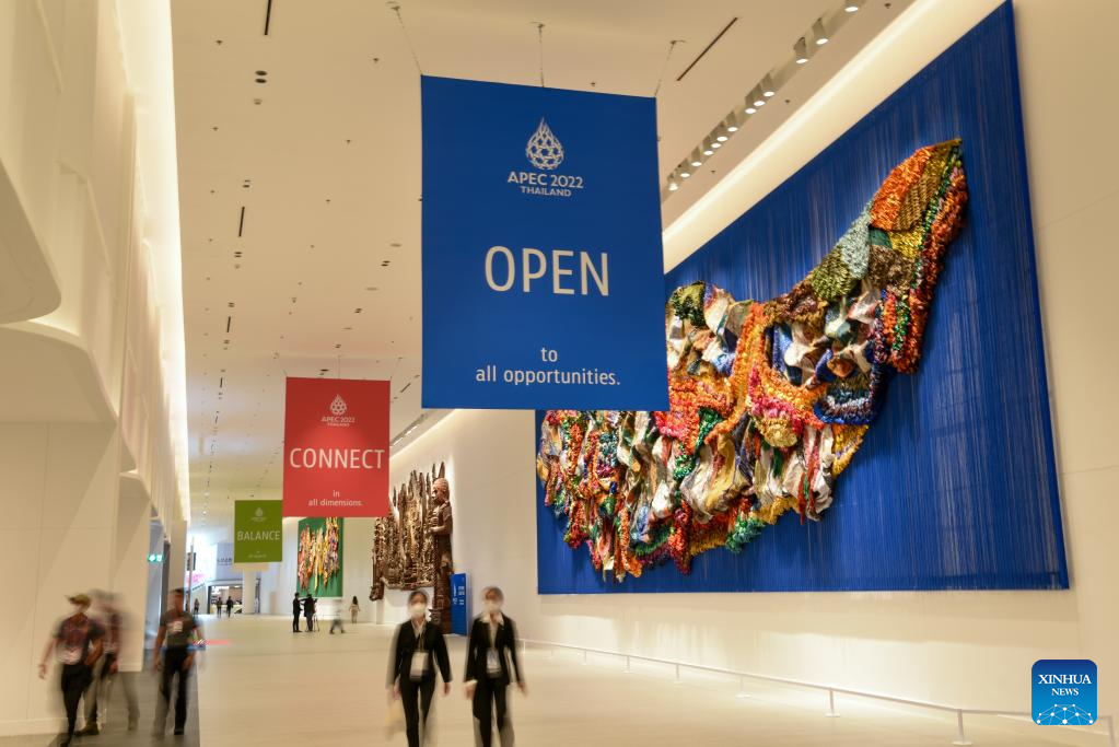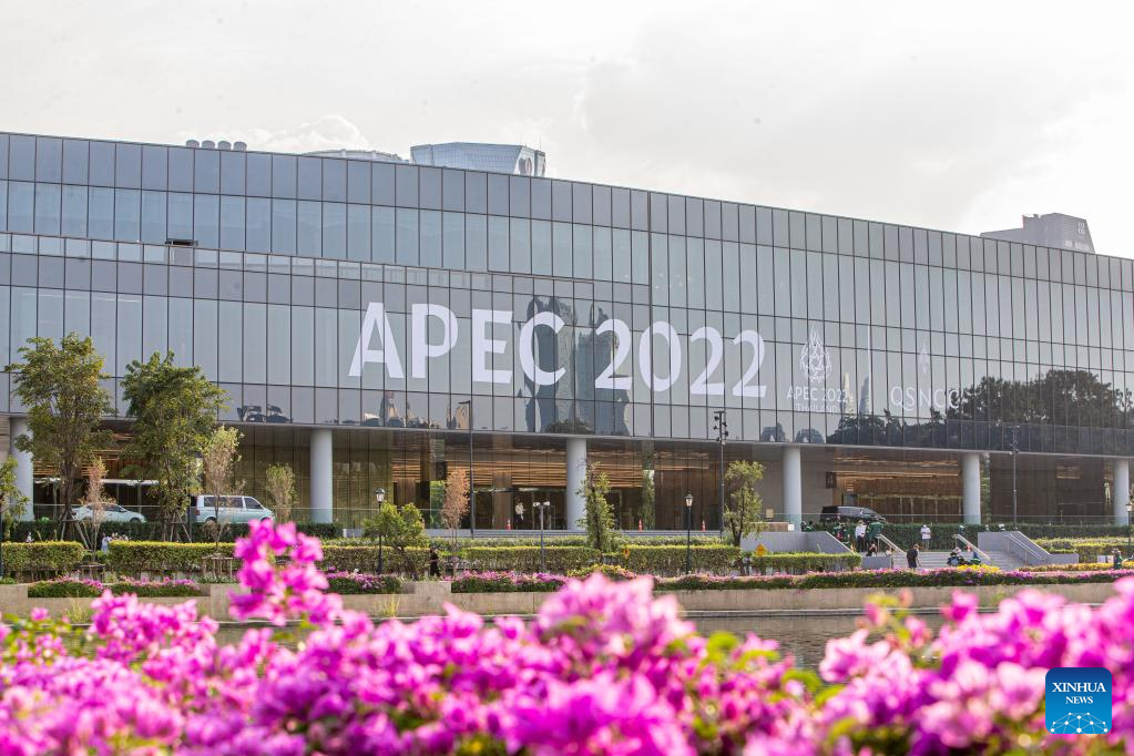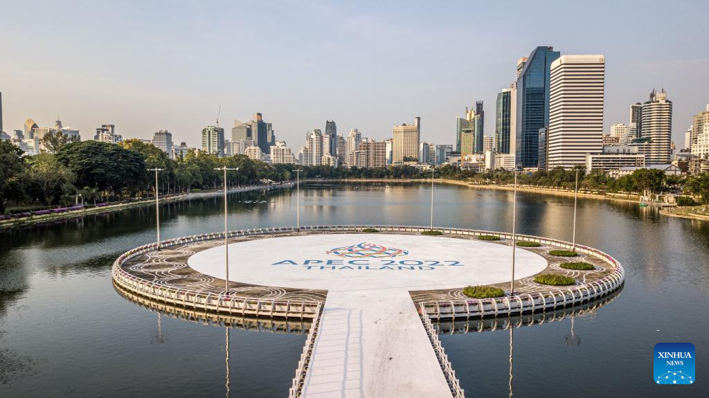 A logo of APEC 2022 is pictured in Bangkok, Thailand, Nov. 16, 2022. The 29th Asia-Pacific Economic Cooperation (APEC) Economic Leaders' Meeting will be held in Bangkok, Thailand, on Nov. 18-19. (Xinhua/Wang Teng)
