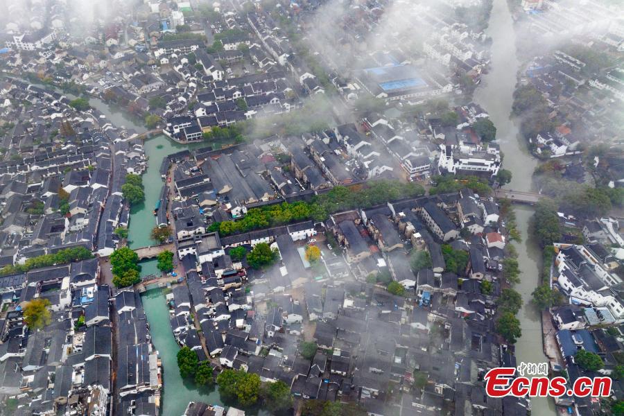 Aerial view of Tongli ancient town in Wujiang district of Suzhou, east China's Jiangsu Province, Nov. 17, 2022. (Photo: China News Service/Yang Bo)