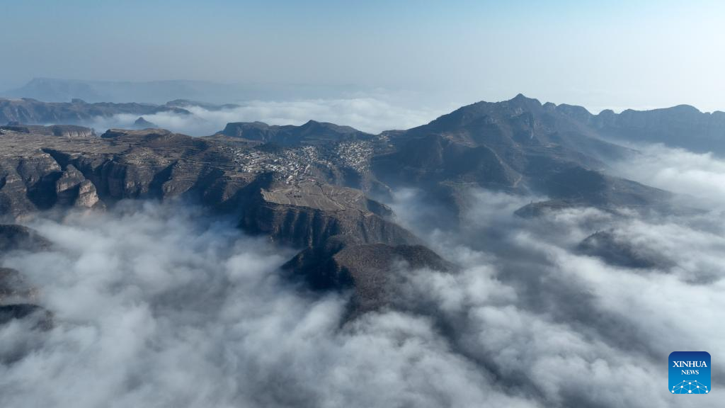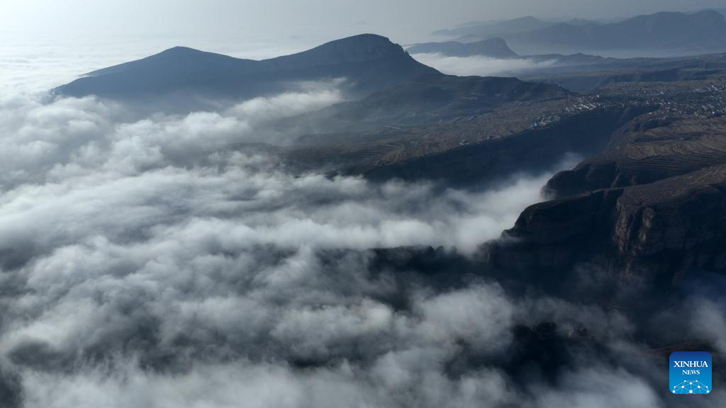 This aerial photo taken on Nov. 19, 2022 shows sea of clouds in Taihang Mountains in Liushigang Town of Shahe City, north China's Hebei Province. (Xinhua/Mu Yu)
