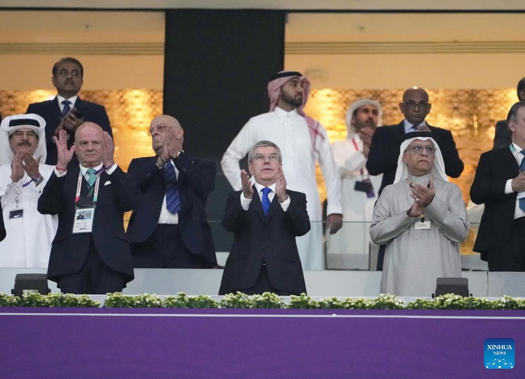 IOC President Thomas Bach (Front C) is seen after the opening ceremony before the Group A match between Qatar and Ecuador at the 2022 FIFA World Cup at Al Bayt Stadium in Al Khor, Qatar, on Nov. 20, 2022. (Xinhua/Zheng Huansong)
