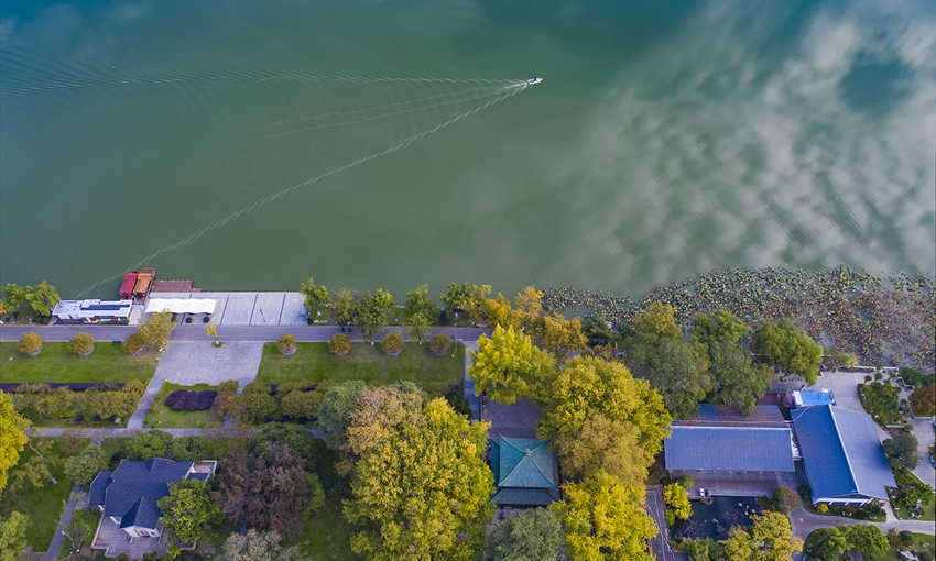 A boat sails on Xuanwu Lake in Nanjing, east China’s Jiangsu Province. (Photo/ Liuwei)