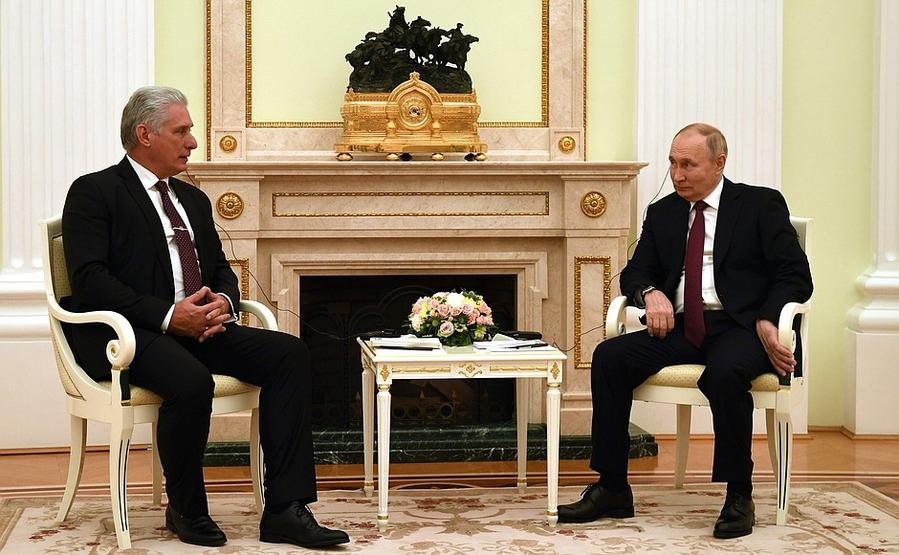 Russian President Vladimir Putin (R) meets with First Secretary of the Central Committee of the Communist Party of Cuba and Cuban President Miguel Diaz-Canel Bermudez in the Kremlin in Moscow, Russia on Nov. 22, 2022. (Kremlin photo)