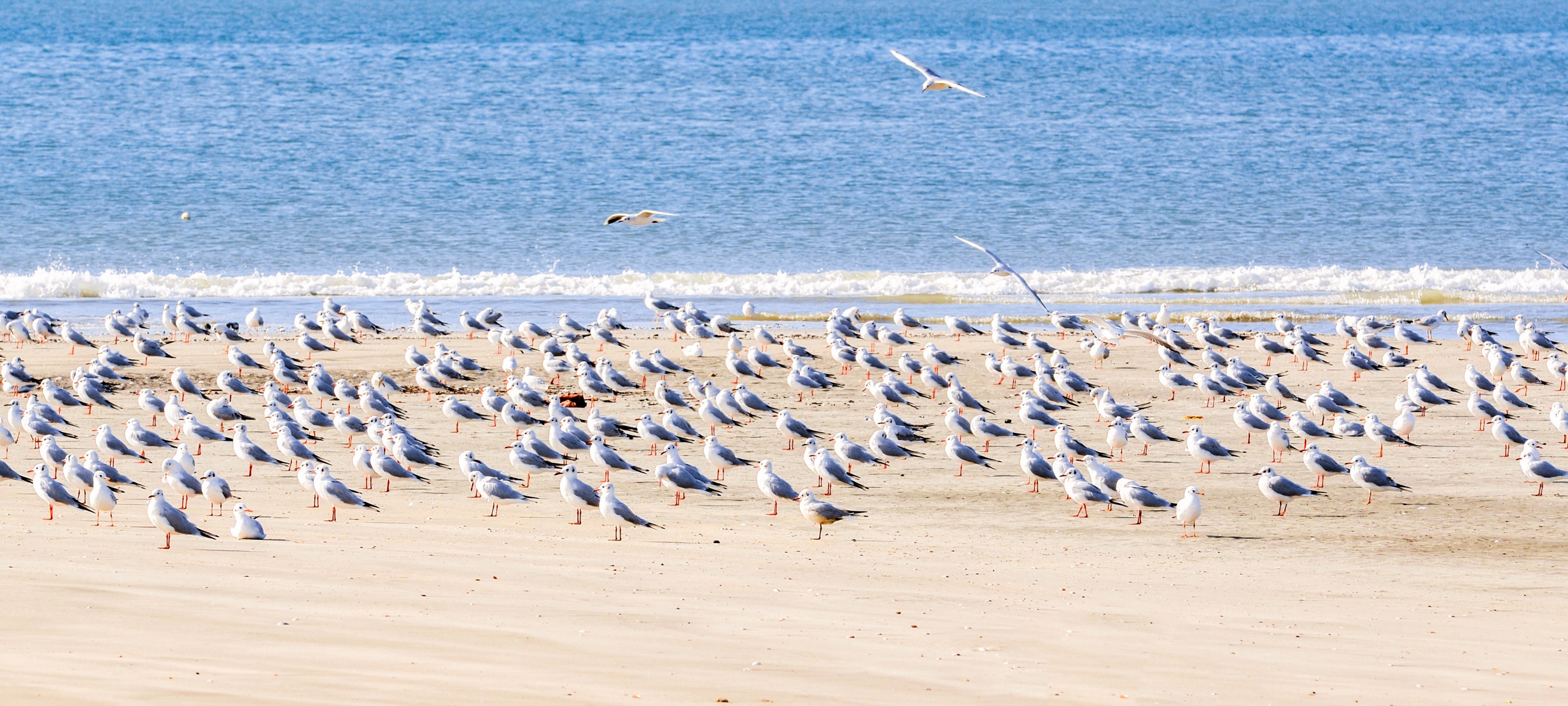 A flock of black-headed gulls flies to the port of Shanwei city, south China’s Guangdong Province. (Photo/Sun Shi)