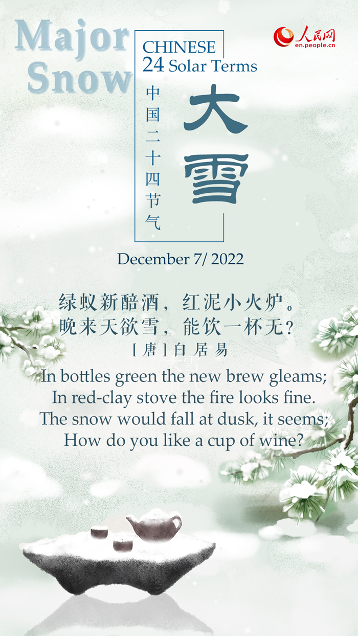 Falling on December 7 this year, Major Snow, also known as "Da Xue" in Chinese, is the 21st solar term of the Chinese lunar year and the third solar term of winter.