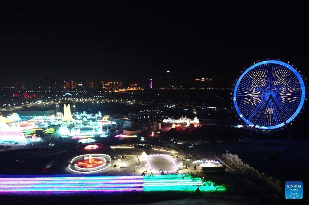 This aerial photo taken on Dec. 11, 2022 shows the Ice and Snow World, China's largest ice-themed park, in Harbin, northeast China's Heilongjiang Province. (Xinhua/Wang Jianwei)